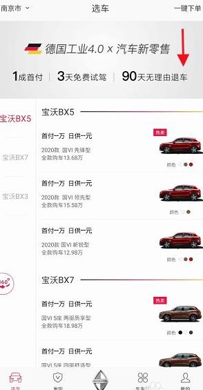 登录成功进入宝沃汽车首页,选择车门点击进入