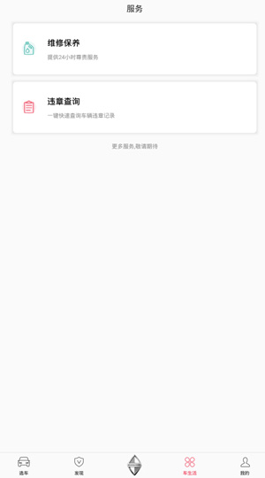 1、在本站下载安装宝沃汽车app,运行软件,可以看到由选车、发现、车生活、我的四个板块;