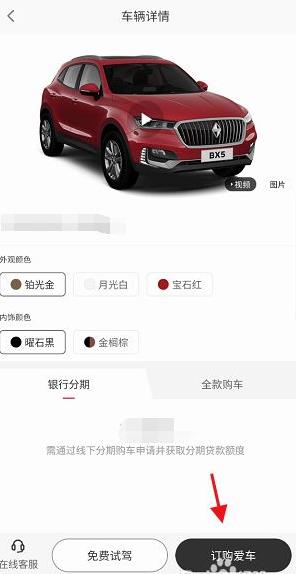 5、按照选项进行选择,选择完成点击订购爱车进入