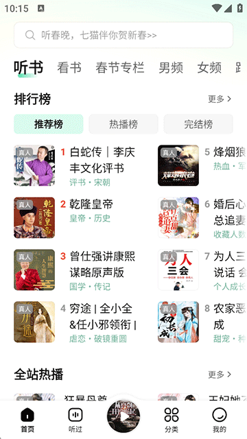 【超多品类】都市霸总、现言古言、玄幻武侠、相声评书、历史出版、亲子情感各种品类随意听。