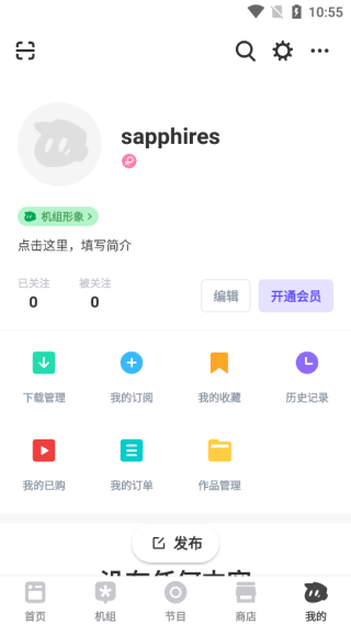 我的板块可以查看自己账号的情况,包含购买、作品、收藏、历史记录等