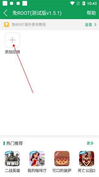 1、在首页—点击免root栏目并点击添加应用;