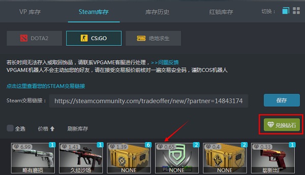 5、原有的VP库存的CSGO饰品将不能用于预测,需要将VP的背包CSGO饰品兑换为钻石之后,再前往预测页面进行预测。