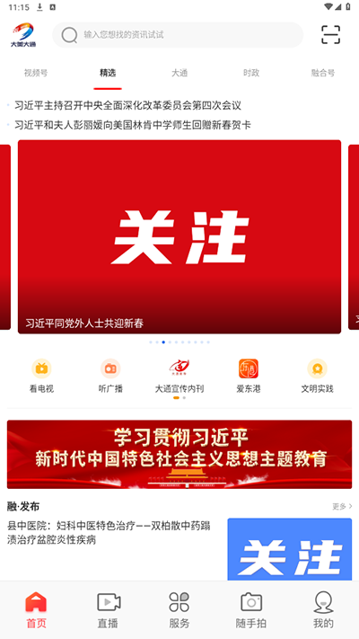 大通融媒app是专为大通县居民朋友打造的新闻资讯客户端,也大通县融媒体中心的官方应用!内嵌“专题”、“图集”、“广播”、“电视”、“报料”、“热点直播”等多个模块,并提供搜索、随拍等功能,为群众提供本土、实用的服务,实现了传统媒体和新兴媒体的全面融合。