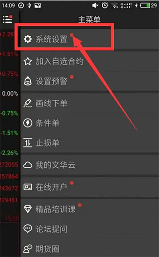 1、进入软件在随身行中点击菜单按钮,然后点击系统设置选项。