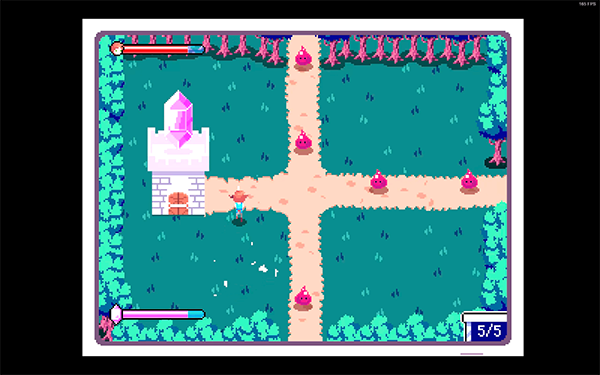 本作用像素画面展现这个童话般的异世界。虽然这是午夜的冒险,场景多少有些昏暗,但为了展现童话的氛围,色彩的使用依然非常丰富。游戏的场景虽然都在屋子里但很具有想象力,不论是阁楼上的花园,还是地下室通往的矿洞,或是阳台上眺望的景色,都让人期待打开这扇门会看到怎样场景。