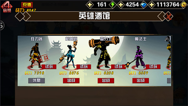 前面介绍到了,在每次进入战斗之前都可以配战两名英雄人物,那么在此小编将告诉大家,英雄人物的获取可以在英雄酒馆中,购买获取