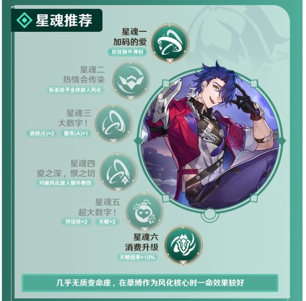主词条方面,头部和手部为固定的生命值和攻击力属性,躯干选择效果命中,脚部选择攻击力或速度或击破特攻,位面球选择风属性伤害加成,连结绳选择攻击力或能量回复效率。