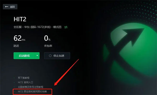 2、在加速界面点击“hit2预注册和官 网预约攻略”进入教程。
