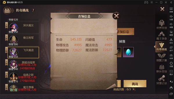 小提示:点击首领页面的首领信息能够看到该传奇怪物的相关属性,大家可以参考这个属性表去准备,确保本次挑战万无一失。