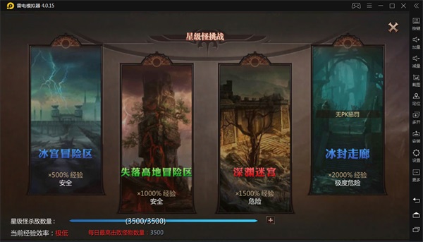 在这里不同的难度怪物经验加成都不同,击杀单个怪物获取的经验可能不是很多,但每日可以击杀3000个怪物。这样经验累计到一起,通过星级怪挑战可获取的经验数值也是非常庞大的。