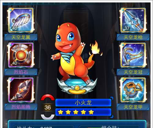 小火龙的特点就是高攻高输出高暴击,尤其是技能为全屏伤害,十分推荐初始增加100能量的套装,起手一个全屏技能的小火龙是非常恐怖的。其次是吸血装备,小火龙的血量略低,撑血的装备虽然好,但是性价比低,用吸血来保证生存能力反而会更好,后期一个技能过去,基本上血量就满了。