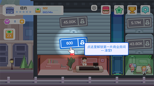 玩的时候,我会觉得这个游戏真的超级棒!一开始从接待第一个客人开始,看着客人每十秒付钱,那种小确幸的感觉特别让人开心。升级房间能赚更多钱,但只靠开房间赚钱太慢了,商业区的加入让玩法更丰富。比如澡堂就是我解锁的第一个商业区,收入很快就上去了!画面和音乐也很加分,每次打开游戏都有一种身临其境的感觉。