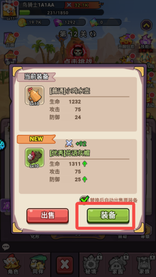 2、当遇到属性好的装备时,点击装备并分解属性差的装备;