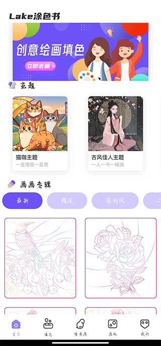 Lake涂色是一款很不错的休闲涂色游戏,特别适合喜欢画画但又没有太多技巧的朋友。它提供各种丰富的画稿主题,比如卡通人物、花卉和动物等等,你可以随意选择自己喜欢的风格进行创作。游戏界面简单易用,颜色种类也很多,想怎么涂就怎么涂,完全不用担心找不到合适的颜色。