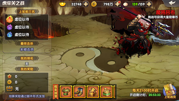 这个玩法主要是BOSS挑战,单一BOSS适合使用单体杀伤角色。最好的人物是吕布,关羽,马超,赵云,张飞也可以;击杀BOSS后,可开启BOSS宝藏,获得高级装备和武将。还有拍卖行可以将这些装备拍卖,获得海量的元宝。