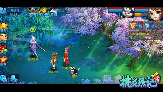 进入游戏中,大家将从青云村开始《桃花源记》的旅程,跟着主线剧情前行,会结识新手村的各路人马,途经桃花缤纷的燕子坞,来到热闹繁华的洛阳城,领养一只忠诚的灵兽旺财,结识了本领高超的各位伙伴,等级也是快速飙升。