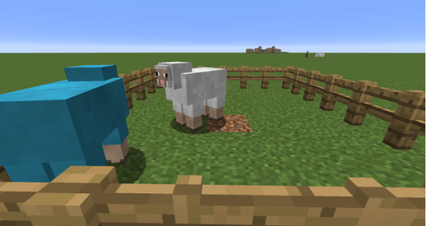 吃掉一块草皮的羊,可以看到其身旁出现了一块泥土