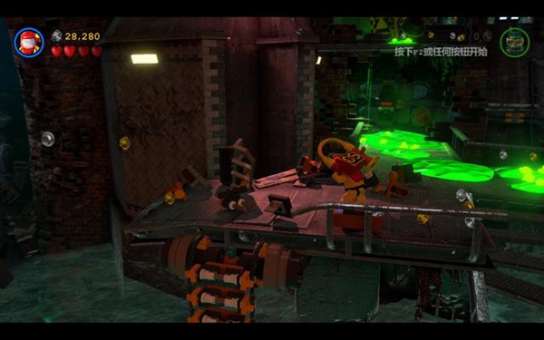 绿色则会关闭下方的喷火器,让蝙蝠侠通过。