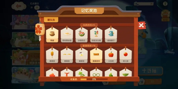 糖果兑换里的玩具就是池子里的,每个玩具需要6个草莓糖,一次十连抽如果不出玩具就可以获得一个草莓糖(安慰奖)。