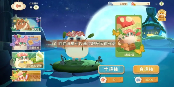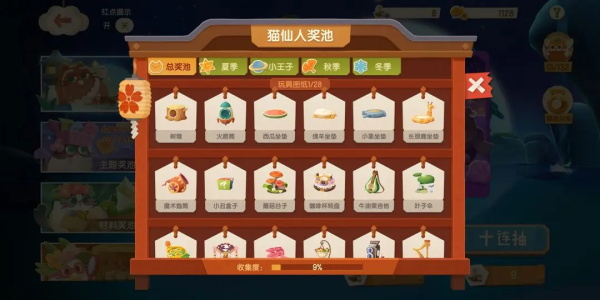在获取猫咪方面,游戏提供了多种途径:装修公寓、完成章节任务、首充奖励、收集藏宝图碎片以及提升访客好感度等。抽卡系统是获取猫咪的重要方式之一,分为多个池子,每个池子都有不同的奖励机制。比如总奖池可以通过单抽或十连抽获得SSR猫猫,而主题奖池和材料奖池则需要消耗金鱼干来解锁。
