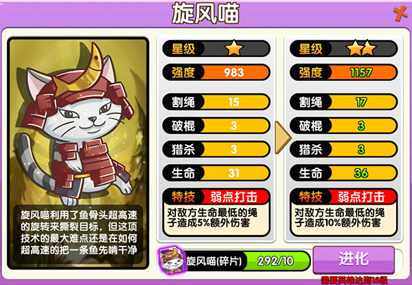 日本田园猫的技能对绳子具有百分比伤害的加成并且能造成三段打击威力十足。技能释放不像特工喵需要瞄准,它的技能是自带穿透性的,所以操作也十分方便。