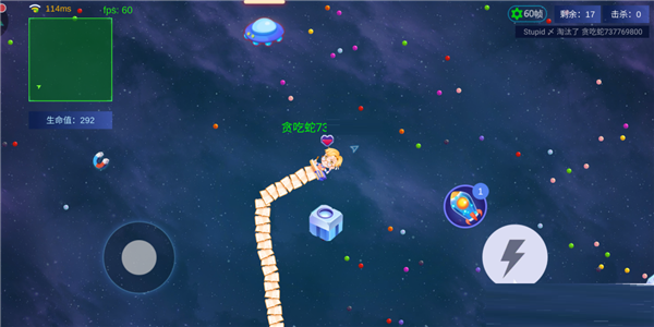 太空逃亡模式中贪吃宇宙发生辐射危机,原本无忧无虑的贪吃蛇们被神秘黑洞卷入太空,安全区域不断缩小,你的目标就是活到最后。