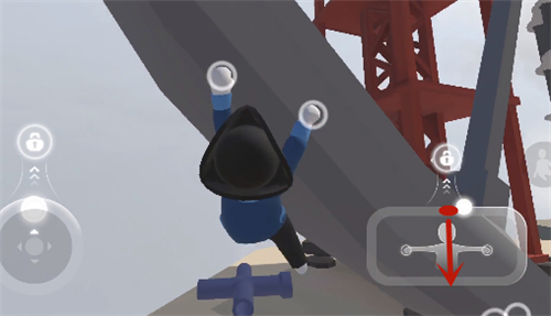 然后按住手势键【往下滑动】,把角色身体往上撑,滑到底后【快速松开】,在手势键顶部中间【快速双击】,抓牢墙面(双击的第二下不要松)。