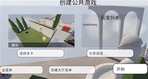第五步:来到【创建公共游戏】界面,点击分享邀请按钮,就能拉好友进来。再点击右下角的开始按钮,就能直接开始多人游戏了。