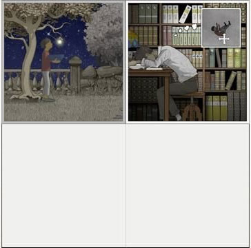 3、点击第二格的缩放按钮移动到图的右侧,如上。男孩在储物室找到一个蓝色的盆子。