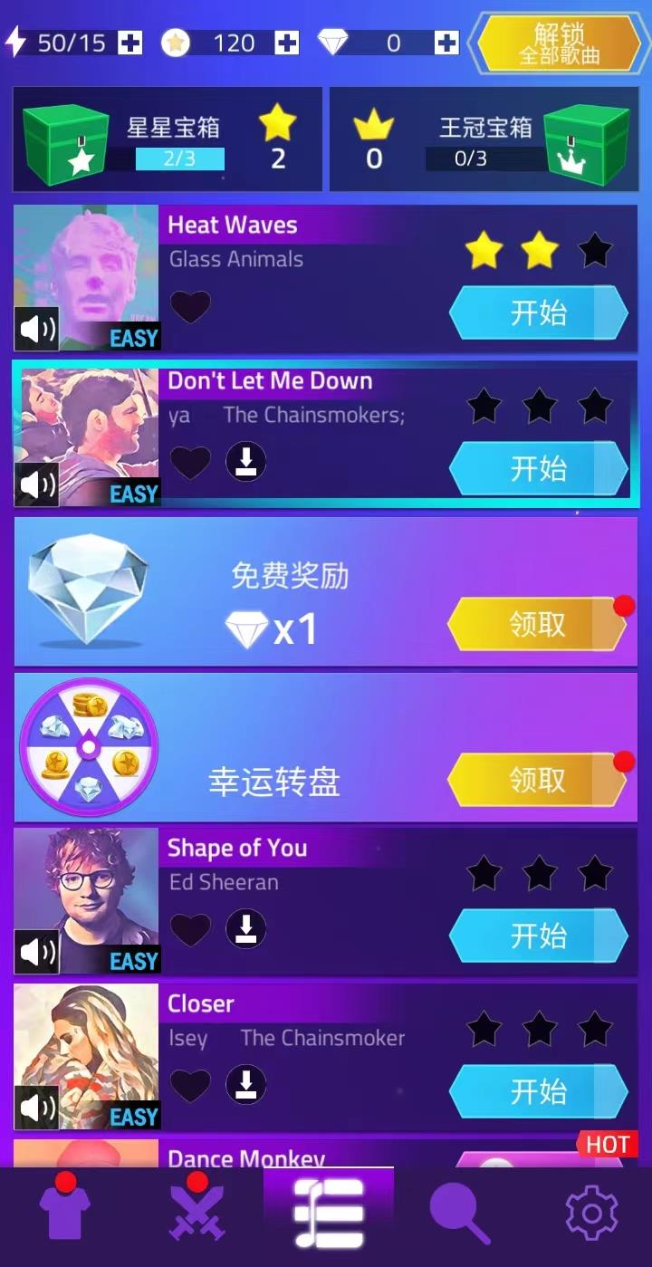 2、玩家可以依据自身喜好选择歌曲的难以程度进行游戏;