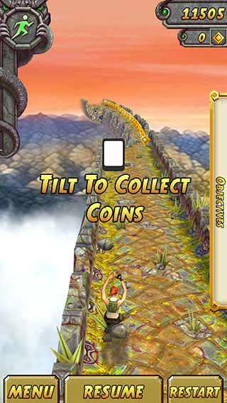 6、同时玩家重力感应左右倾斜手机来控制角色左右移动操作,收集各种钱币和躲避各种狭窄的道路