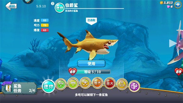 1、可以收集各有7种不同大小的20类鲨鱼品种,扮演敏捷的双髻鲨,甚至到著名的大白鲨!