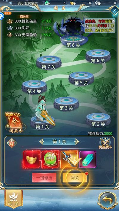 9、为了提升角色的战斗力,你可以一键装备;一键装备可以帮助你快速装备上最好的装备,提升你的战斗能力;