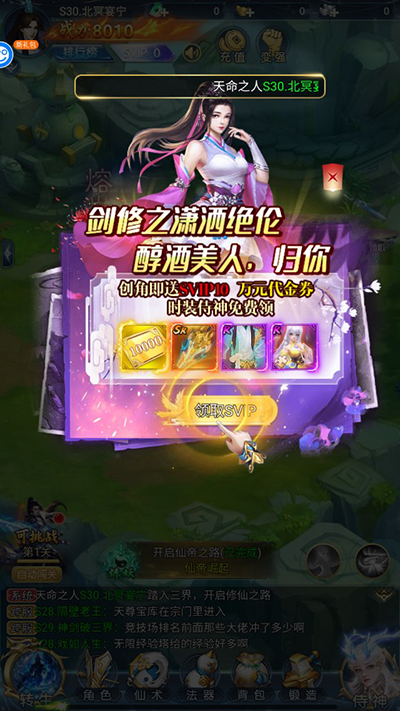 游戏剧情紧凑刺激,充满了斩妖除魔的任务和各种挑战。新人玩家可以通过新手福利快速提升实力,比如领取SVIP10、万元充值卡等豪礼。游戏还设计了每日签到、在线十连抽等丰富的活动,奖励包括元宝、召唤符碎片和稀有道具。