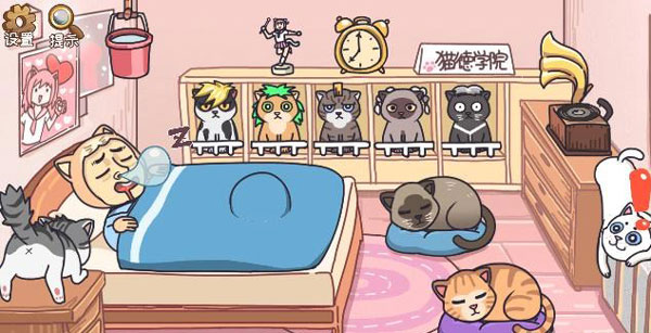2、当歌曲唱完后2秒内,顺次点击猫舍的:5只猫。从左到右一次点击。