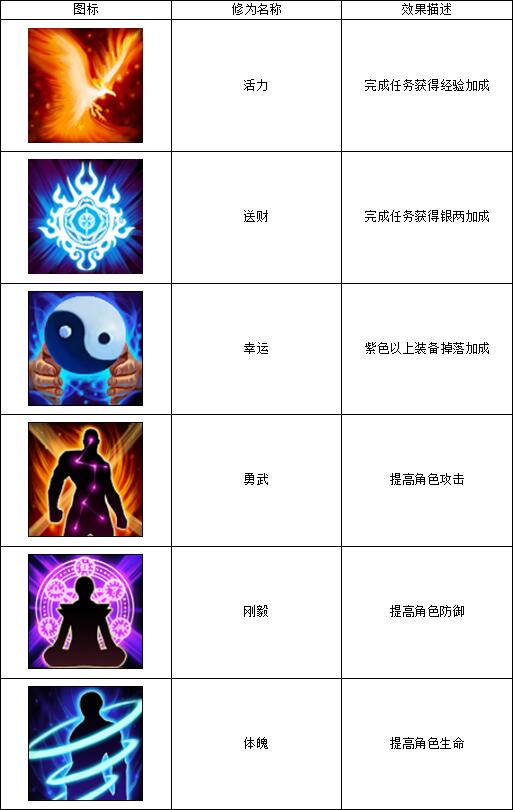 2、提升修为等级需要角色达到对应等级,并且消耗帮贡及银两才能升级;