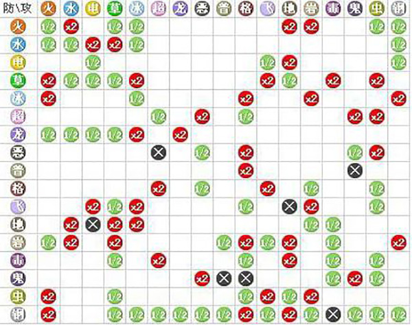 特攻分为超能,火,水,草,冰,龙,恶,电,仙。共18种属性。
