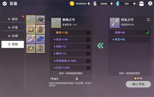 如果你打到了重复的装备,一定先鉴定一手,如果出了高级附加属性,可以通过萃取把这些属性转移到对应部件上,更高的属性值也能替换较低的属性。但要知道,被萃取了属性的装备将会损坏,无法再次装备了!