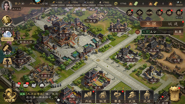 1、首先进入【山河志】便是你的主城,你可以在城中实现练兵、招募能人异士,建设城防、扩充兵力、屯粮等操作。