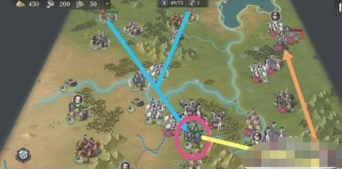 在图中所示的地方建一个小堡垒和三个民兵,用它来吸引和抵抗敌人的增援,很容易解决敌人增援的问题。