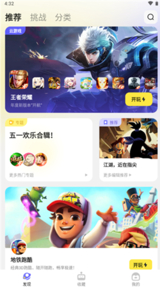 2、进入软件后,在发现这里,有着丰富的游戏推荐,如原神、王者荣耀、地铁跑酷等等