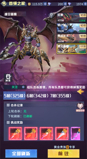 2、如果小伙伴们沉浸式挑战首领的话,那么就推荐各位去尝试一下【首领之家】玩法。作为《天启之光》手游中的一个特色玩法,小伙伴们在首领之家场景中不消耗疲劳值不断挑战首领,同时可以使用“首领之家重生券”对整层已经进入重生冷却时间的首领进行复活,源源不断对首领发起挑战,最终获得海量装备。