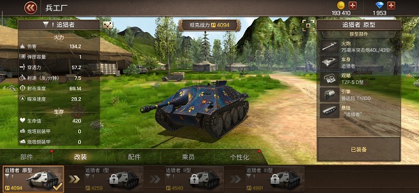 坦克可以进行改装,改装会改变坦克外形和部分属性。改装增加了每辆坦克的玩法多样性,让玩家在挑选出战坦克时有了更丰富的选择。