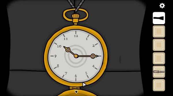 6、回到婴儿车附近,点击女士身上的怀表,就能发现这个符号,然后我们参考海报上的图案来描绘这个图案,需要按照左上、左下、右的顺序来解锁,会出现10点15的时间。