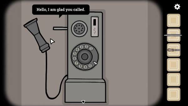 6、回到母女旁边,发现劳拉不见了。点击右边的电话亭,用钥匙打开门,然后拨打24355,发现需要一枚硬币。