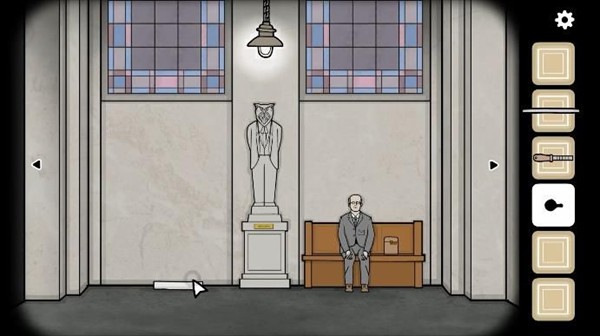 2、向左,来到有猫头鹰先生雕像的场景,点击地上的海报,得到道具。