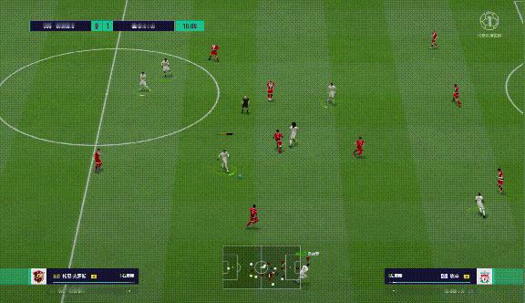 经过中路一系列传导,我方右前卫前插时,前方有一大片空当。后续可以下底传中、ZS横传,或者选择内切搓射,尝试的角度比较多样。攻势足球的一大特点,就是掌控球权时,可以更好地撕扯空间,让边路找到更多传射机会。
