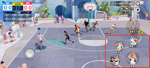 游戏玩法简单有趣,每次进攻有20秒时间限制,3分钟一局,胜负由得分决定。技能按键清晰,爆发技能瞬间改变战局。除了单打独斗,还能和朋友组队,在街头或球场随时随地来一场酣畅淋漓的比赛。