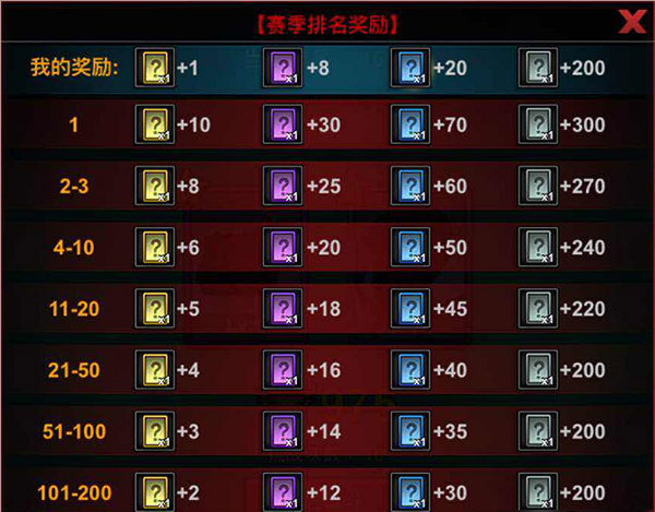 玩家通过每天限制的对战次数对战,胜者加杯,败者减杯,每周为一个赛季、每赛季结束都会得到排名奖励。